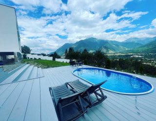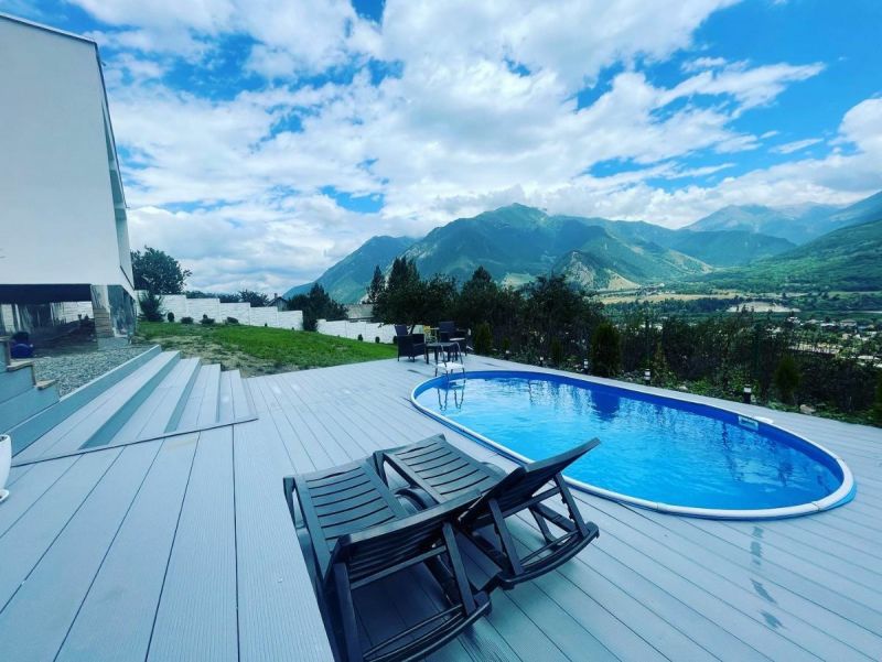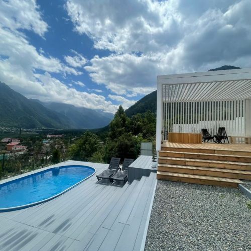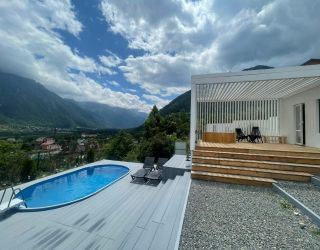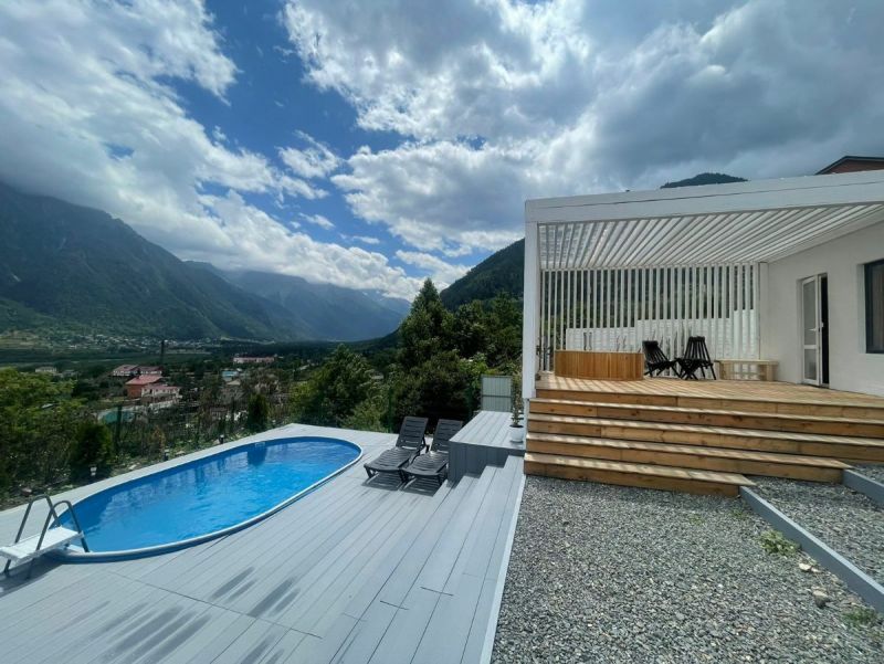 Заполнить память телефона красивыми фотографиями и увезти с собой незабываемые впечатления, которые еще долгое время будут откликаться в душе приятными воспоминаниями, получится у каждого, кто приедет в отпуск или на выходные в «Неон», где огромную территорию с бассейном, сауной, мангальной зоной, детской и волейбольной площадками, террасой с качелями возле горного ручья занимает один единственный, оформленный в стиле хайтек, коттедж.
